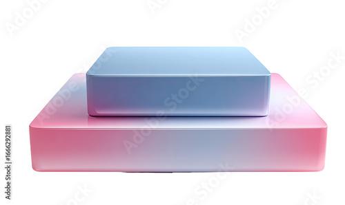 Two stacked, rectangular, glossy, light-gradient platforms. One light purple, one rose-pink. Abstract and modern display