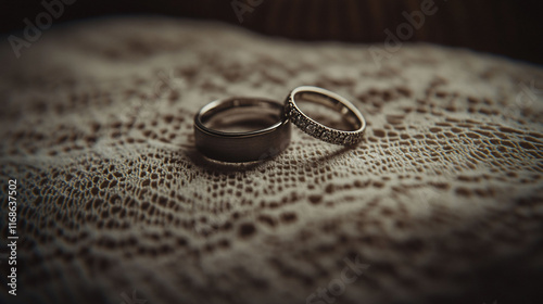 Two wedding rings on lace.