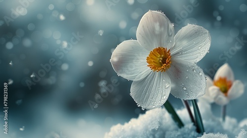 Two White Daffodils in Snow