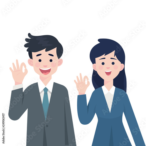 two workers man and woman give sign ok with their hands - Vector