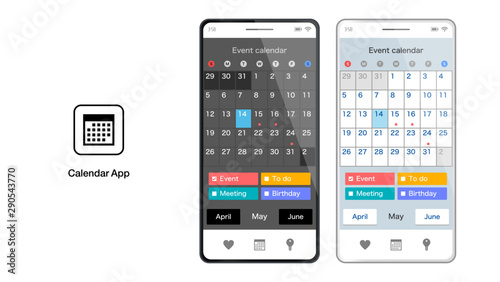 カレンダースケジュールスマホアプリのUIベクターイラスト素材