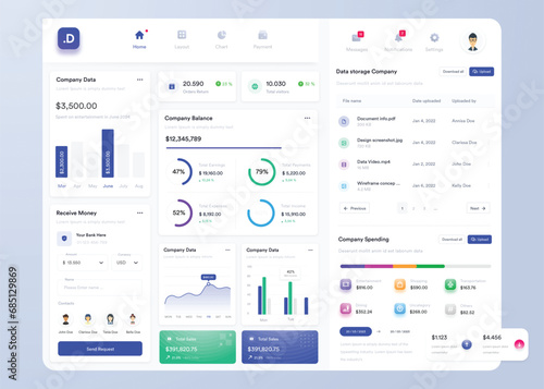 UI UX Infographic dashboard. UI design with graphs, charts and diagrams. Web interface template