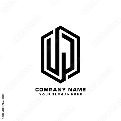 UJ initials business abstract logo in the shape of a hexagon, with a thick line connected around the letters