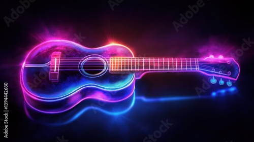 ukulele vector illustration, glowing neon light effect on a dark background