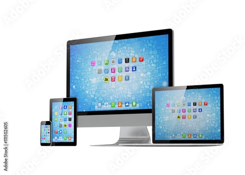 Ultimate web design, laptop, smartphone, tablet, computer, display. 3d rendering.