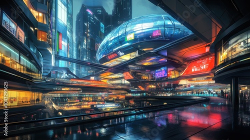 Ultra-Modern Stadium with Transparent Features at Night