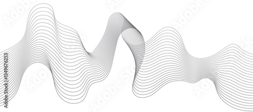 Undulate Grey Wave Swirl, frequency sound wave, twisted curve lines with blend effect. Technology, data science, geometric border pattern. Isolated on white background. Vector illustration.