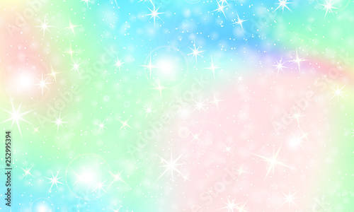 Unicorn rainbow background. Holographic sky