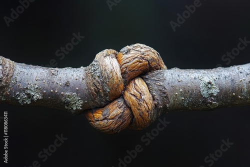 Unique knot formed by intertwining tree branches showcasing nature's intricate design