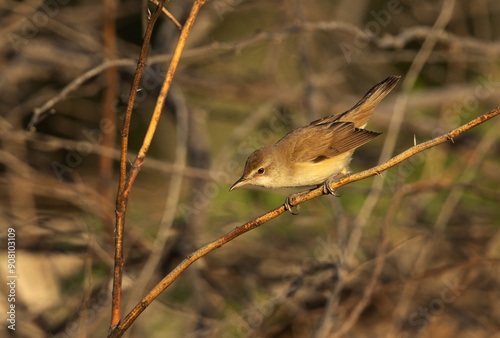 Upchers Warbler perched on tree at Hamala, Bahrain
