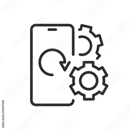 update software icon, mobile software with gears, development phone system, vector illustration