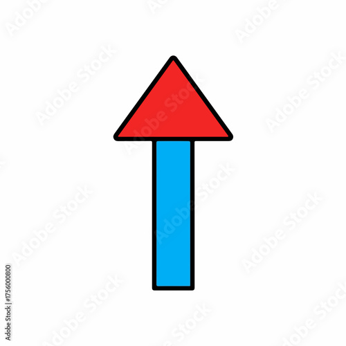 Upward pointing arrow, featuring a red triangle top and blue rectangular base, symbolizing direction, growth, and progress.