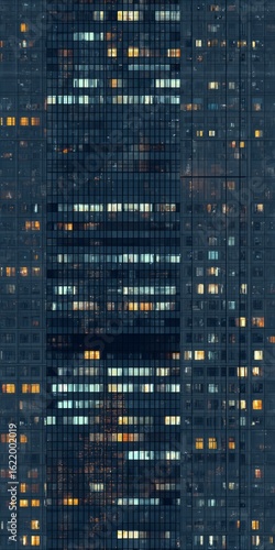 Urban Night View with Illuminated Building Windows and Skyscrapers