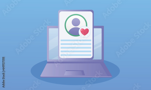 User icon with heart. concept of friendly, assistance, teamwork, consultant, gift, confession, avatar.on blue background.Vector Design Illustration.