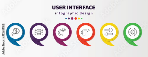 user interface infographic template with icons and 6 step or option. user interface icons such as improve incomes, data analytics cylinder, rotated right arrow, right curve, updating arrow, back