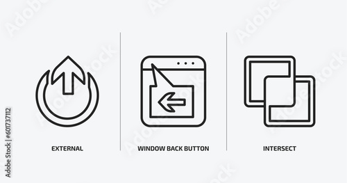 user interface outline icons set. user interface icons such as external, window back button, intersect vector. can be used web and mobile.