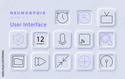 User interface set icon. Security, microphone, search, TV, settings, media control, interaction, Wi-Fi connection, smart navigation, streaming, software design, digital experience, usability