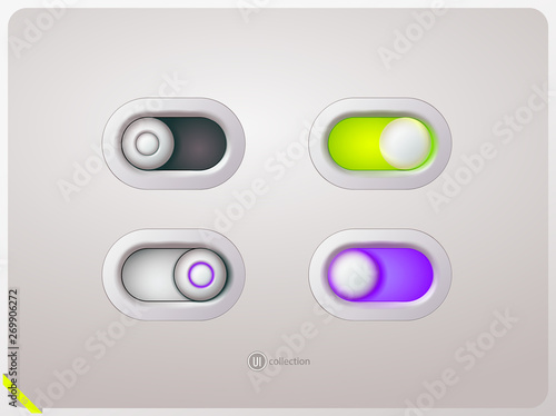 User interface switch in the on and off position. Realistic style. Isolated background. Design ui elements for internet site, web, app, player or phone. Vector illustration.