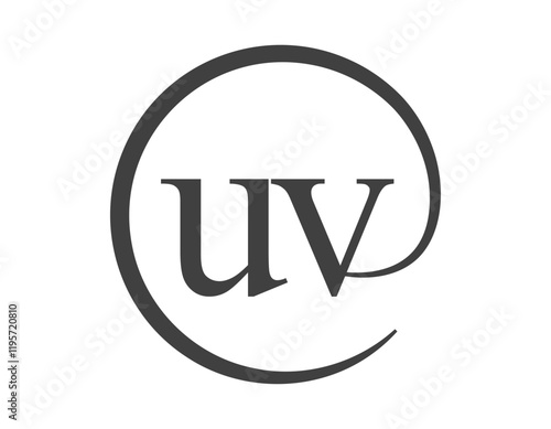 UV logo from two letter with circle shape email sign style. U and V round logotype of business company
