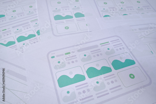 UX website design wireframe. Sketch, prototype, framework, layout future design project. UI/UX - user interface, user experience designer. Creative concept for web design studio. Website development
