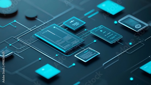 UX/UI flowchart. Node-graphic design. Creative planning. Application process. Development data prototype. Wireframe for web/mobile. Icon phone. User experience concept. 3D rendering.