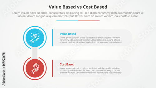 value based vs cost based comparison opposite infographic concept for slide presentation with big circle and rectangle box stack with flat style