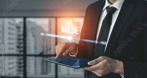 Value measurement and adjustment concept showing value, performance, and optimization level with focus on data analytics, calibration, and improvement Vouch