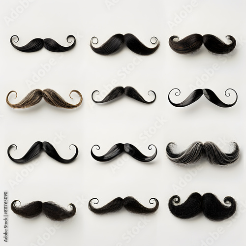 Various mustache collection isolated on a white background