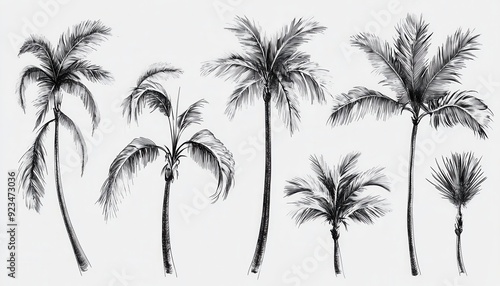 Various palm tree illustrations displaying different sizes and styles against a light background