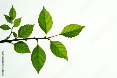 Varying branches with leaves isolated on white background, macro, branch, leaf