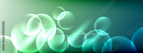 Vector abstract background liquid bubble circles on fluid gradient with shadows and light effects. Shiny design templates for text
