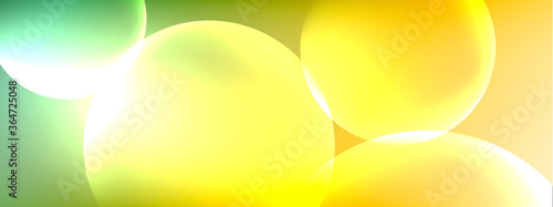 Vector abstract background liquid bubble circles on fluid gradient with shadows and light effects. Shiny design templates for text