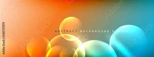 Vector abstract background liquid bubble circles on fluid gradient with shadows and light effects. Shiny design templates for text