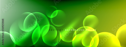 Vector abstract background liquid bubble circles on fluid gradient with shadows and light effects. Shiny design templates for text