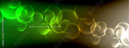 Vector abstract background liquid bubble circles on fluid gradient with shadows and light effects. Shiny design templates for text