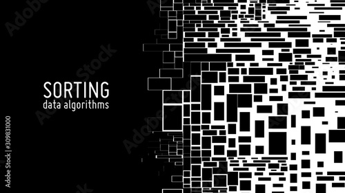 Vector abstract monochrome big data information sorting visualization. Social network, financial database structuration as mosaic chart. Visual complexity clarification. Intricate Mekko graphic