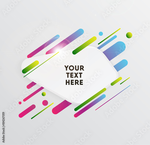Vector background with paper card and abstract colorful shapes. Trendy neon lines and circles wallpaper in a modern material design style.