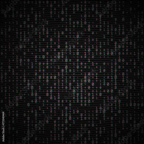 Vector binary code dark background. Big data and programming, hacking, decryption, encryption, computer numbers 1,0. Coding or Hacker concept. Analog TV Glitch moire texture. No signal noise