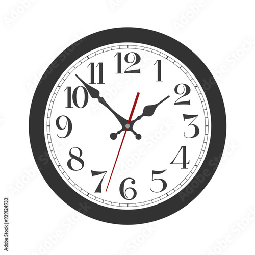 Vector black classic round wall clock isolated on white background