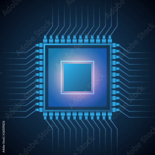Vector Computer CPU processor system chip. Abstract data flow in Core microchip. Stock illustration.