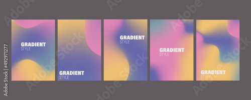 Vector design Detail: Abstract 5 fluid shapes mesh gradient colors backgrounds set.