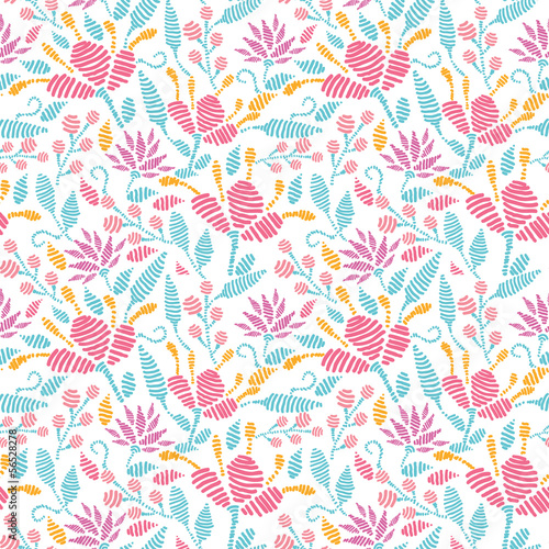 Vector embroidered garden seamless pattern background with