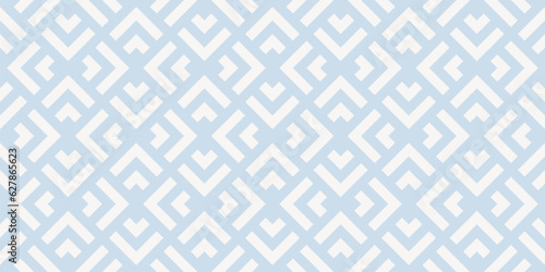 Vector geometric seamless pattern with squares, rhombuses, arrows, grid, lattice, net. Subtle abstract blue and white graphic ornament. Simple modern minimal background texture. Repeat geo design