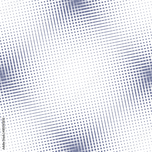 Vector halftone mesh seamless pattern. Blue and white grid, net, dash lines