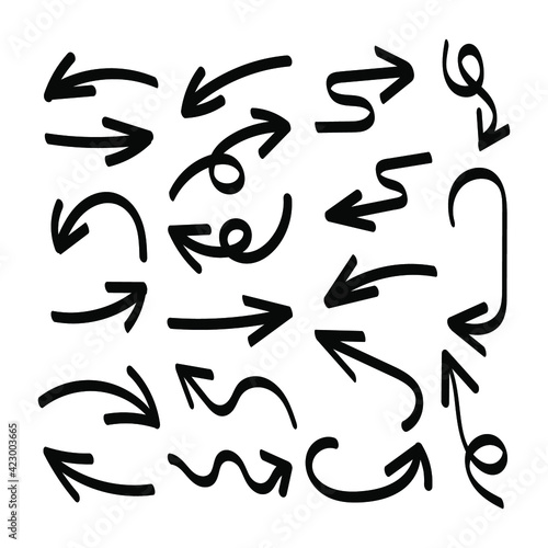 Vector hand drawn arrows set, decorative elements, black bold arrows isolated on white background.