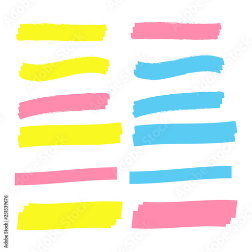 Vector highlighter elements. Yellow marker text selection