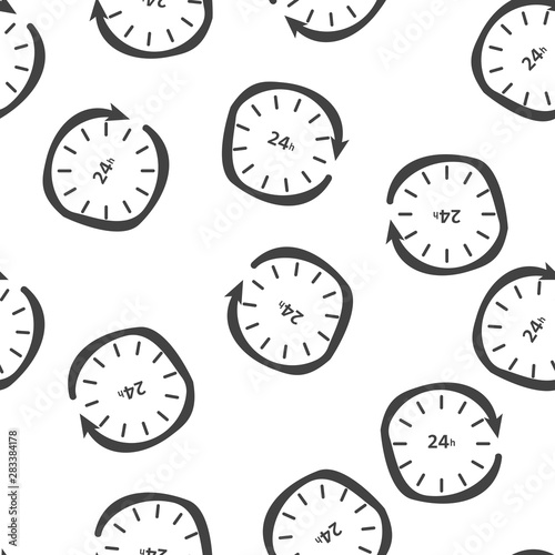 Vector hour icon. Support 24 hours a day. Round the clock seamless pattern on a white background.