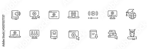 Vector icons for online learning and media platforms.