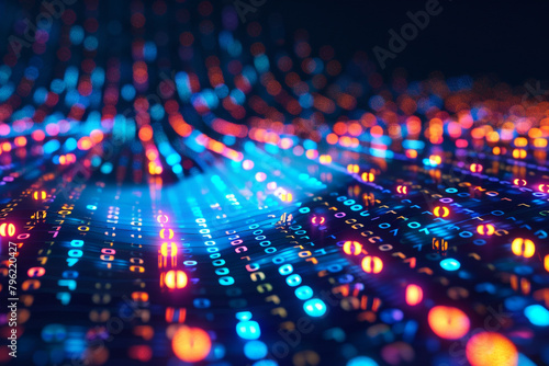 Vector illustration of a technology background, featuring a big data concept with binary computer code, symbolizing the complexity and vastness of digital data