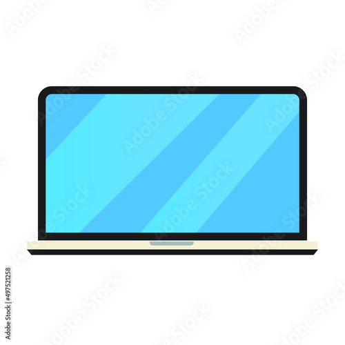 vector illustration of laptop with blue screen, open dialog. Distance learning. Remote work.